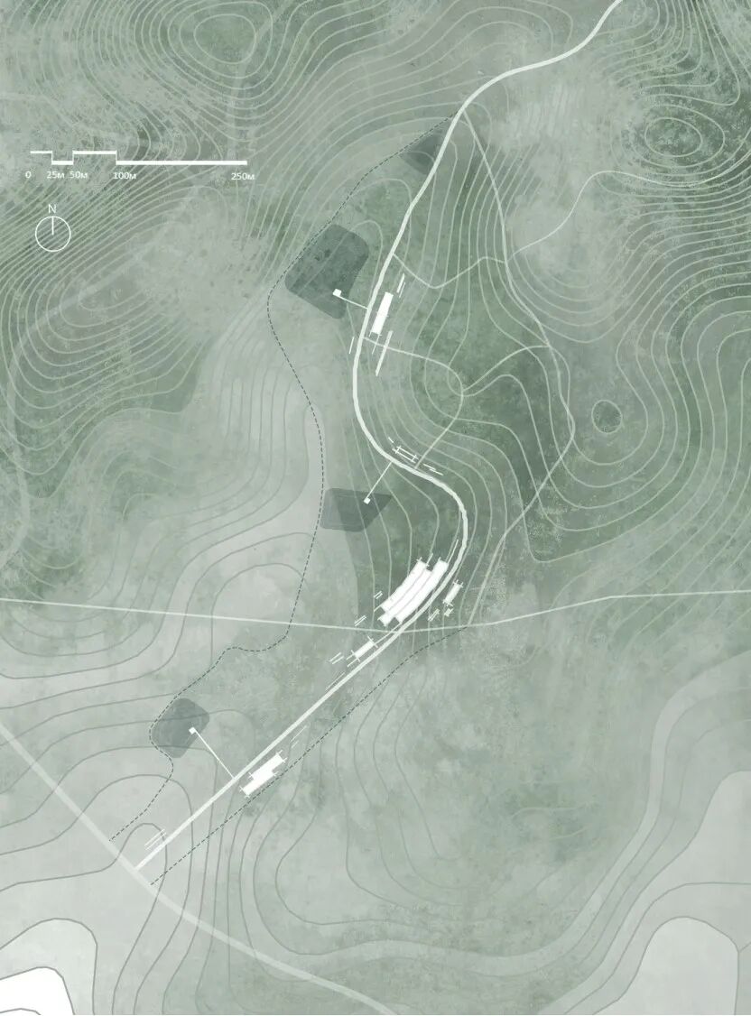 设计出发点在于探索和回应场地内最珍惜的资源—森林资源。建筑以一个轻盈的姿态融入场地之中,提供一个可持续的森林工坊,有计划的使用周边树木资源进行一些家具及手工艺品的制作,同时作为森林内的一个短期的森林旅者驿站。使项目能够在一个可持续发展的理念内,使用原材料加工建造的方式,融入当地的供应链,刺激当地的经济发展。