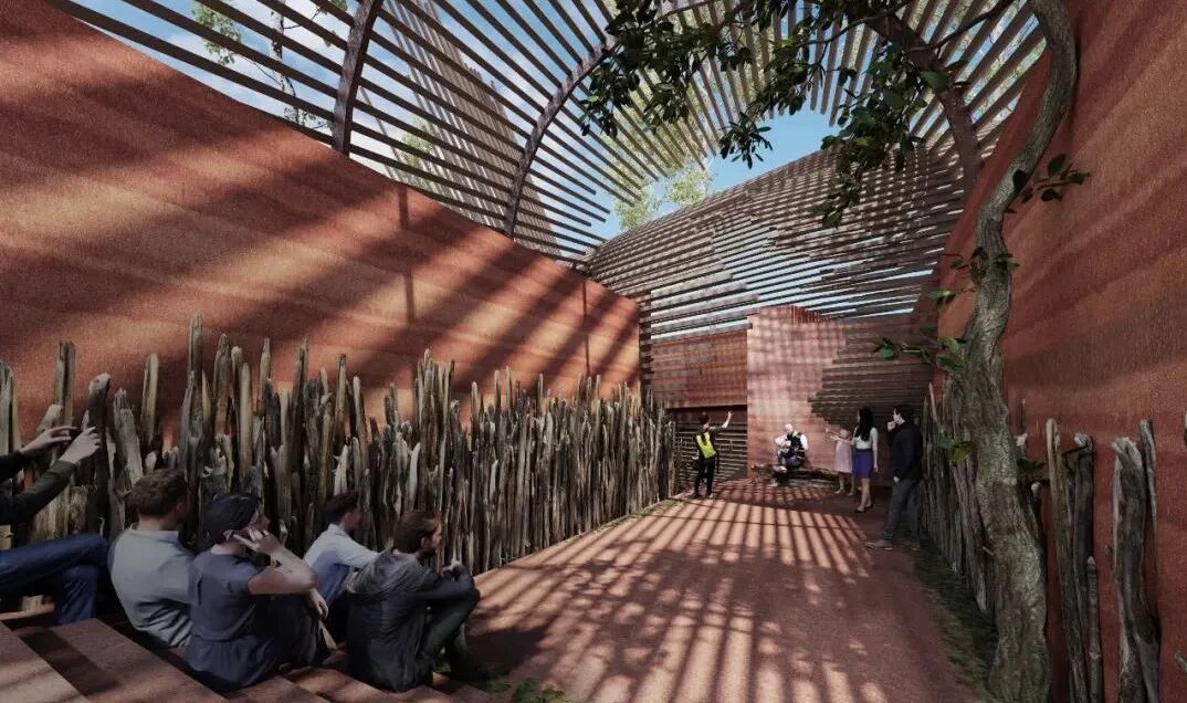阳光与空气可以自然流通,我们主要的聚集活动空间是向地下探索的,挖出的土壤被作为夯土墙的材料。如有必要,可以在这部分较大的空间上方铺设防水布保证室内的一些活动。人们在树根的位置感受着树木向阳而长的生命力。
