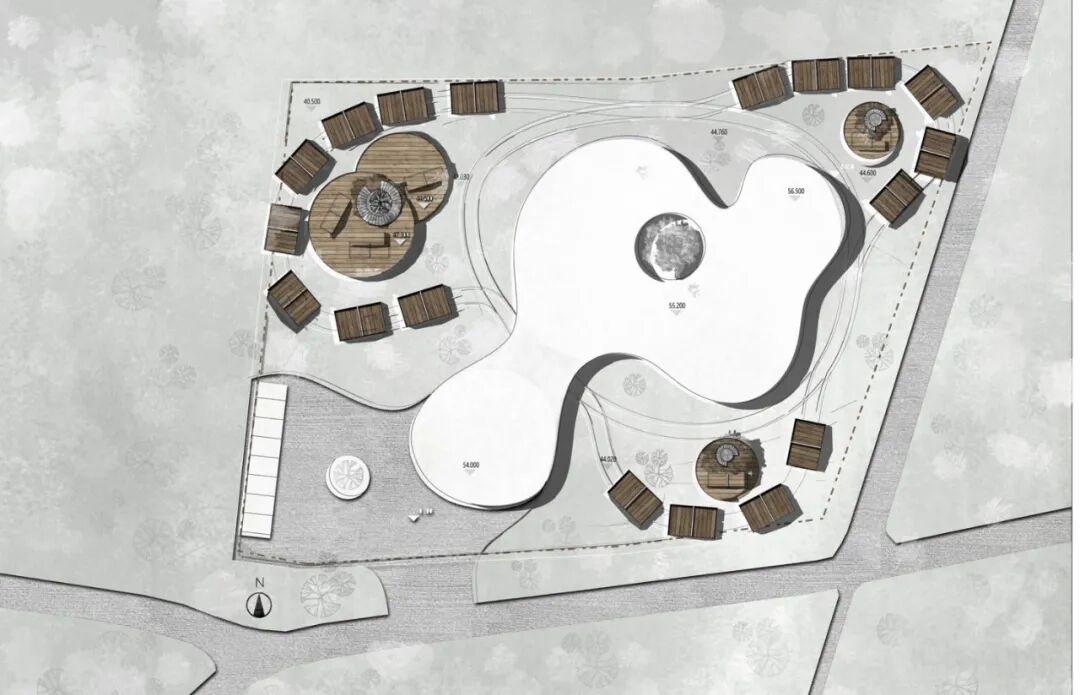 此康养中心以修养心灵为康养之旅的最终境界,并以圆为主题,意在设计一个圆合人心的园;这里是别离城市喧嚣的一方净土,在这可以拾获心灵的宁静。